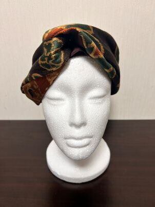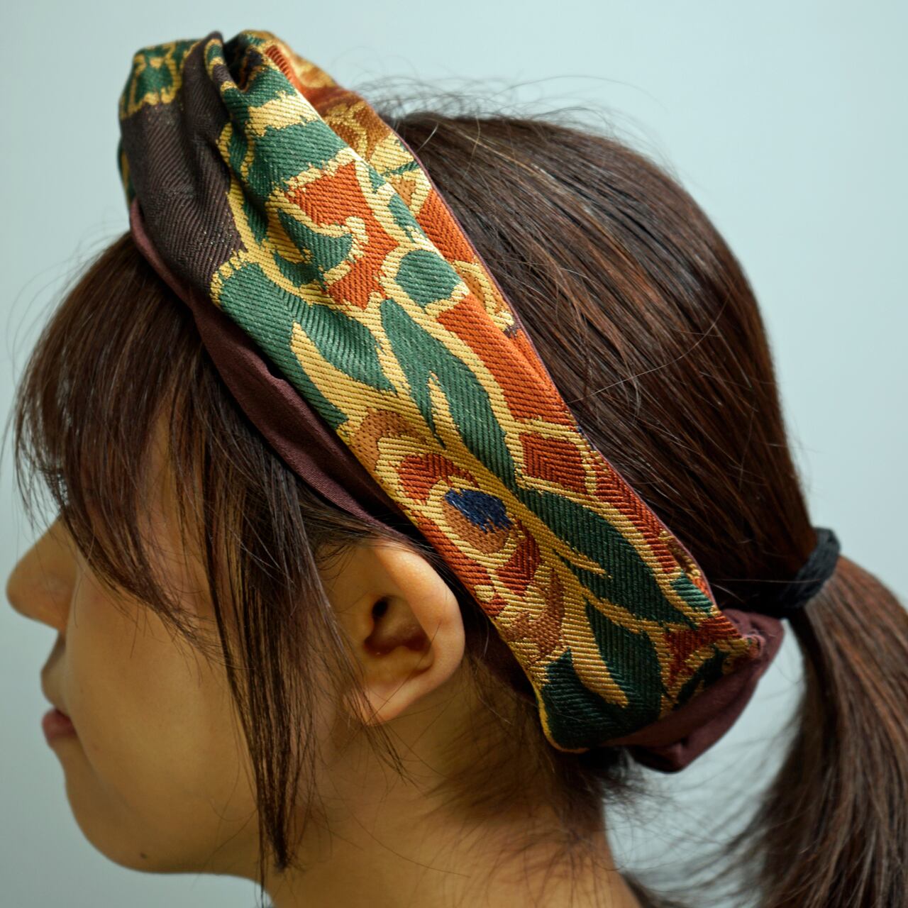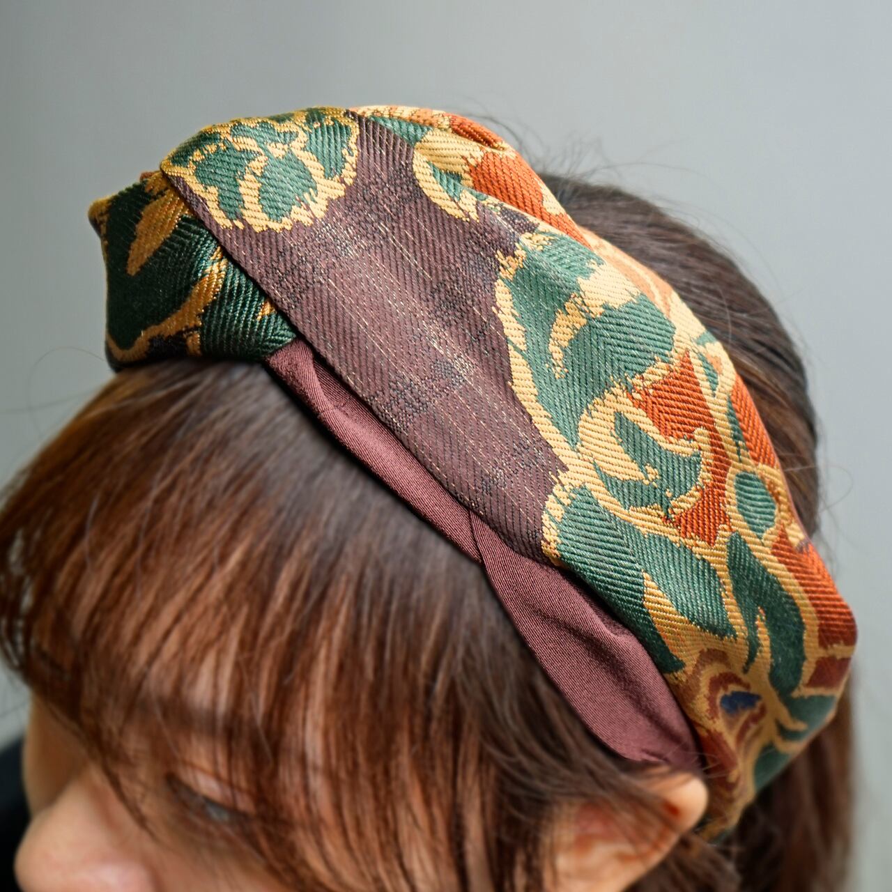 このターバンは、そんな未使用の帯地に新たな光を当てて仕立てた一品。