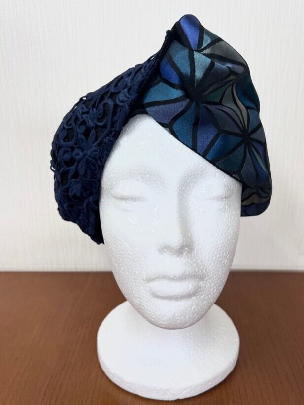 このターバンは、そんな未使用の帯地に新たな光を当てて仕立てた一品。
