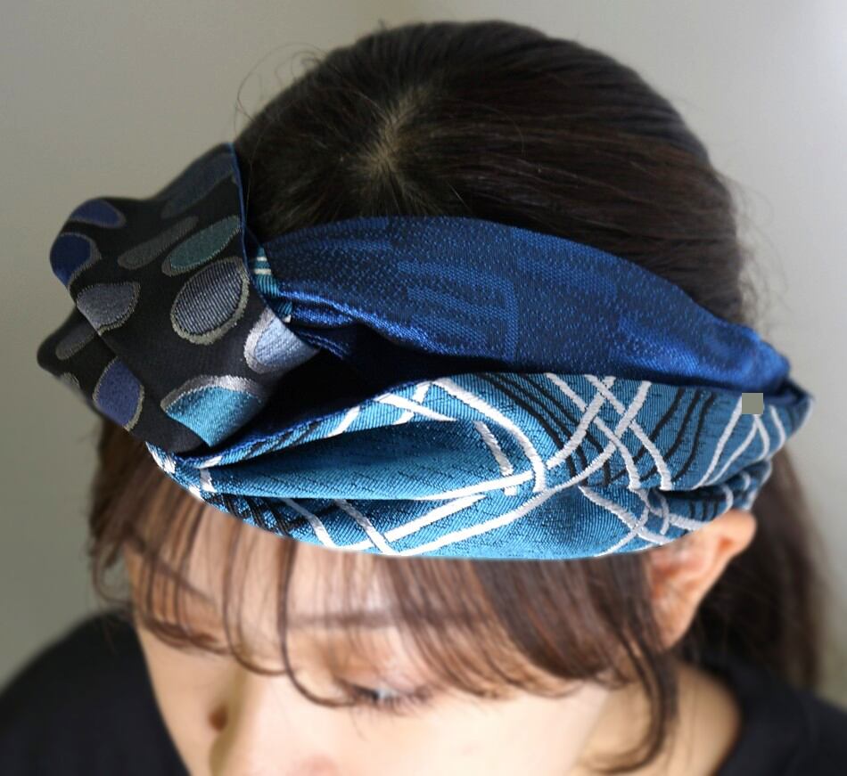 このターバンは、そんな未使用の帯地に新たな光を当てて仕立てた一品。