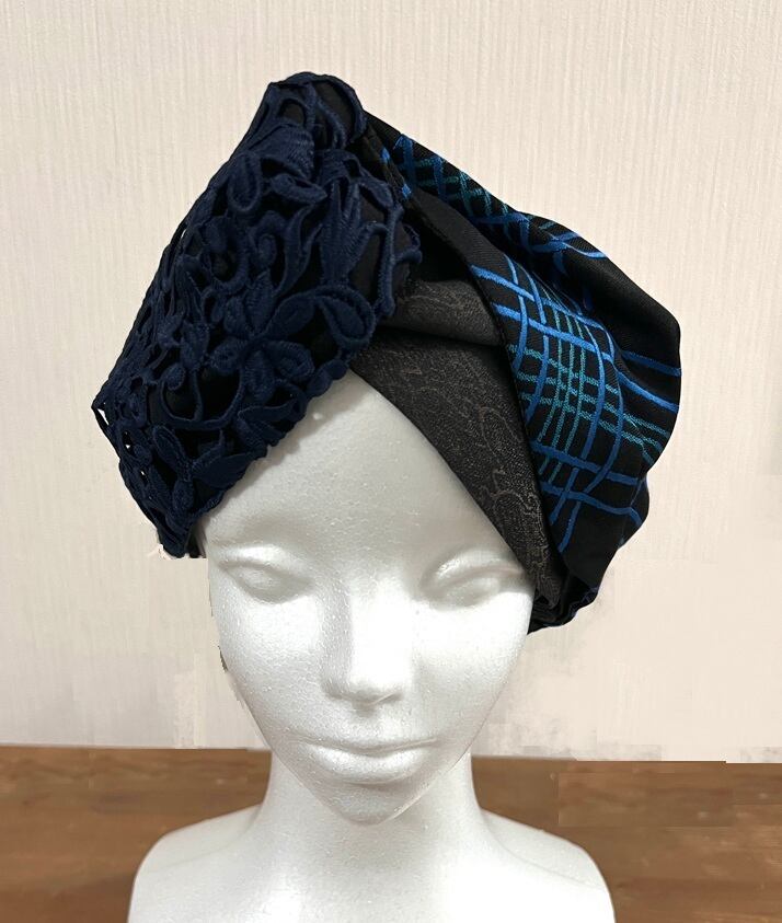 このターバンは、そんな未使用の帯地に新たな光を当てて仕立てた一品。