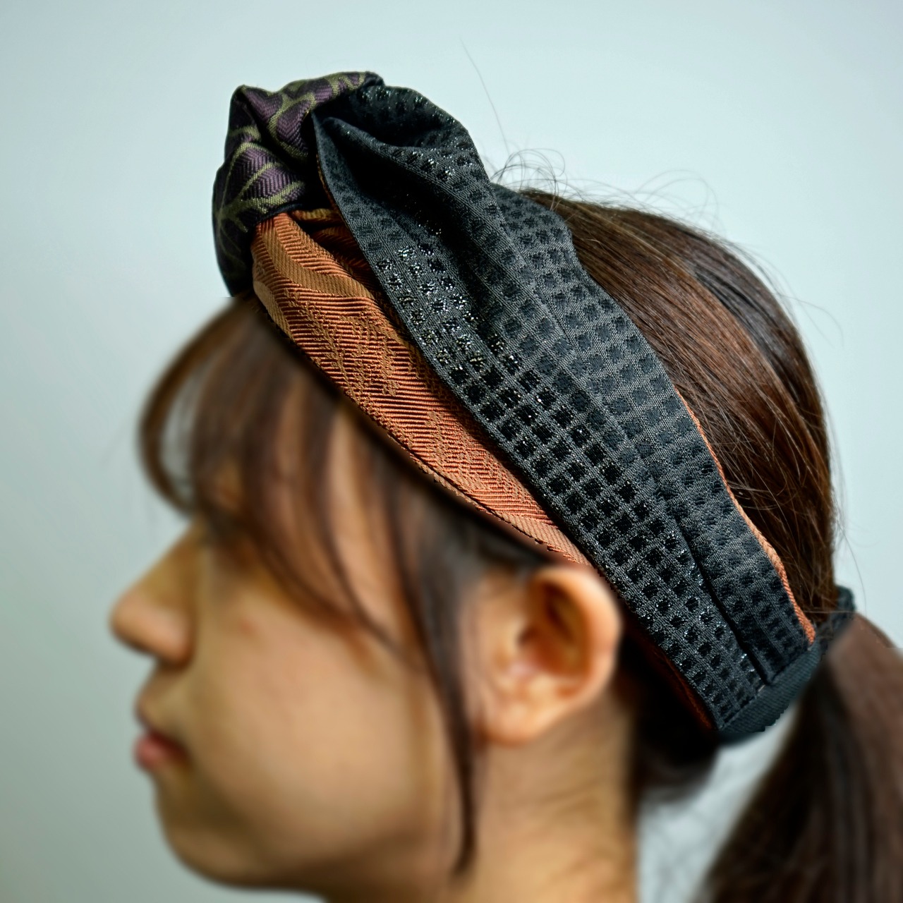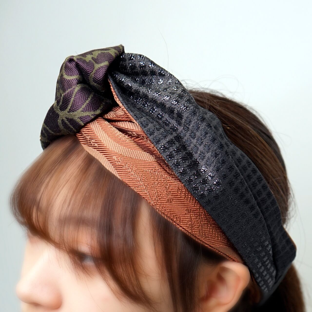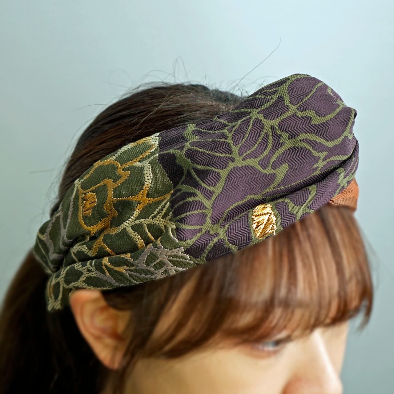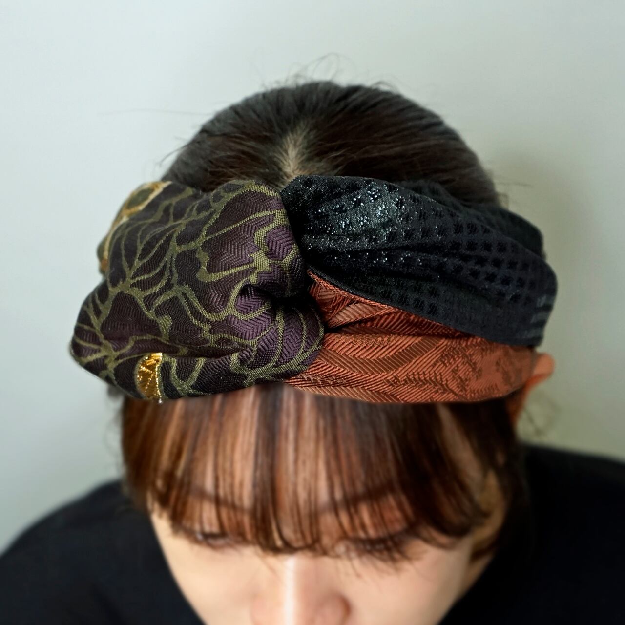 このターバンは、そんな未使用の帯地に新たな光を当てて仕立てた一品。