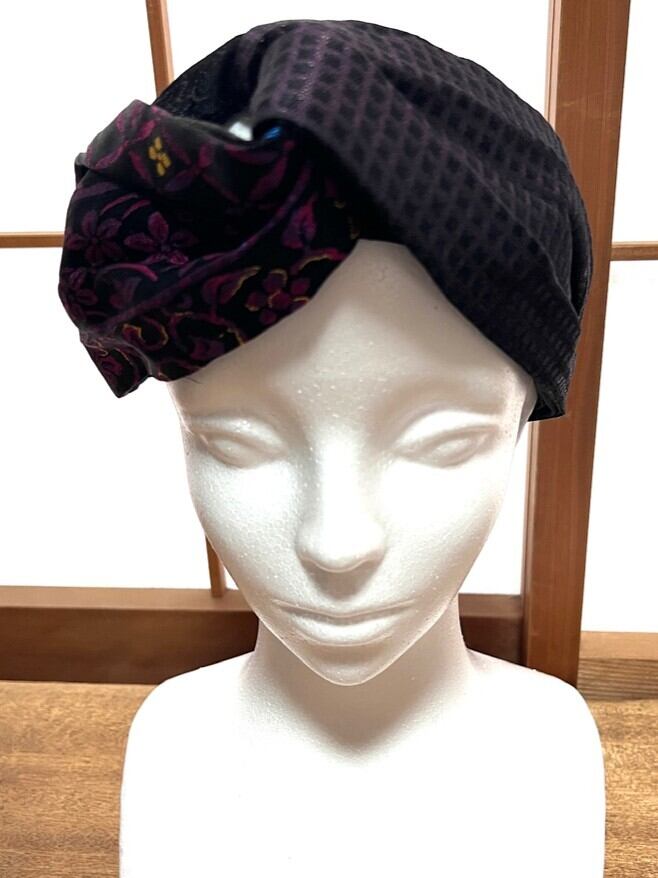このターバンは、そんな未使用の帯地に新たな光を当てて仕立てた一品。